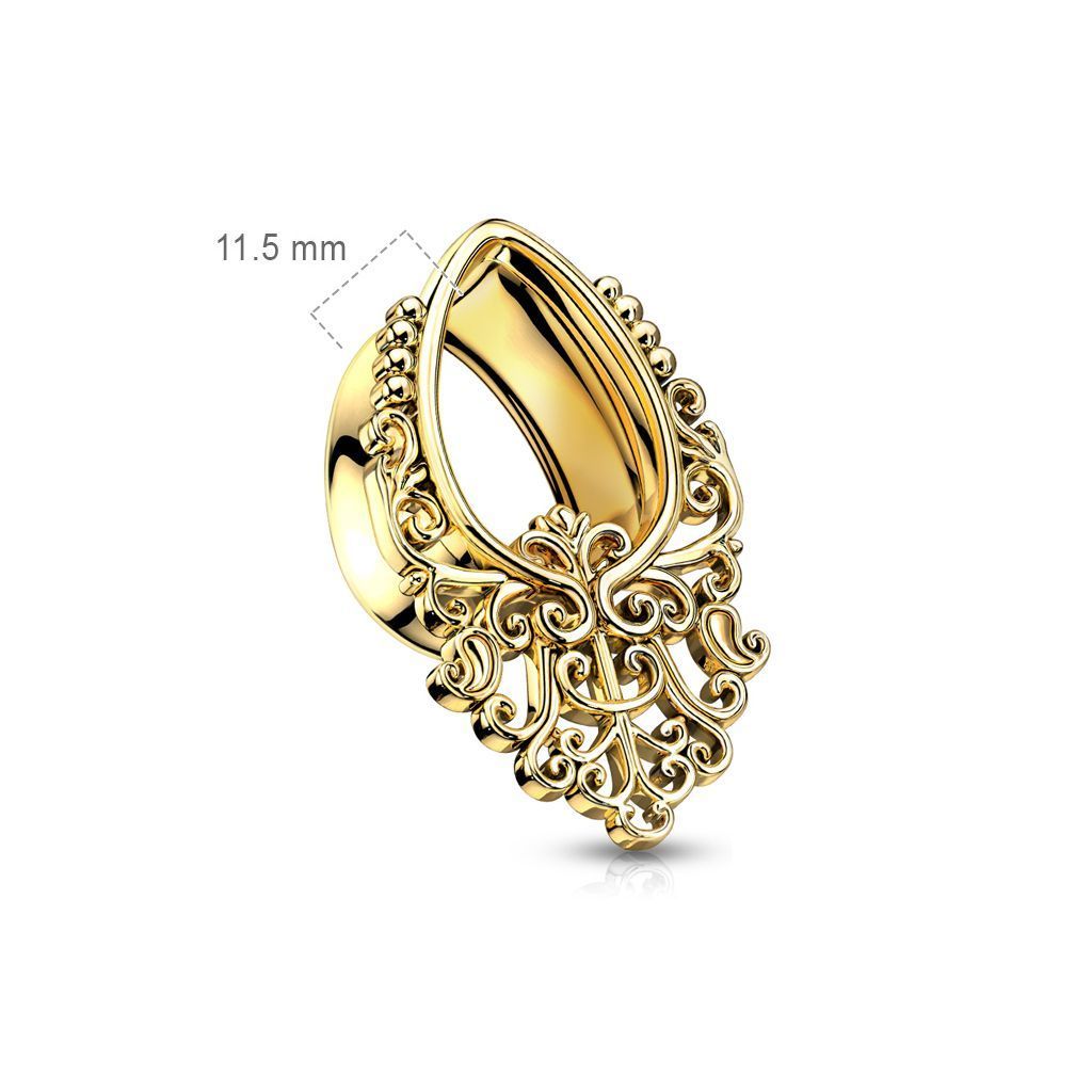 Ocelové šperky a piercing (16552) > Piercing (3883) > Tunely a plugy (302) > chirurgická ocel 316L (127) > Zlacený tunel do ucha s ornamenty (14 mm)