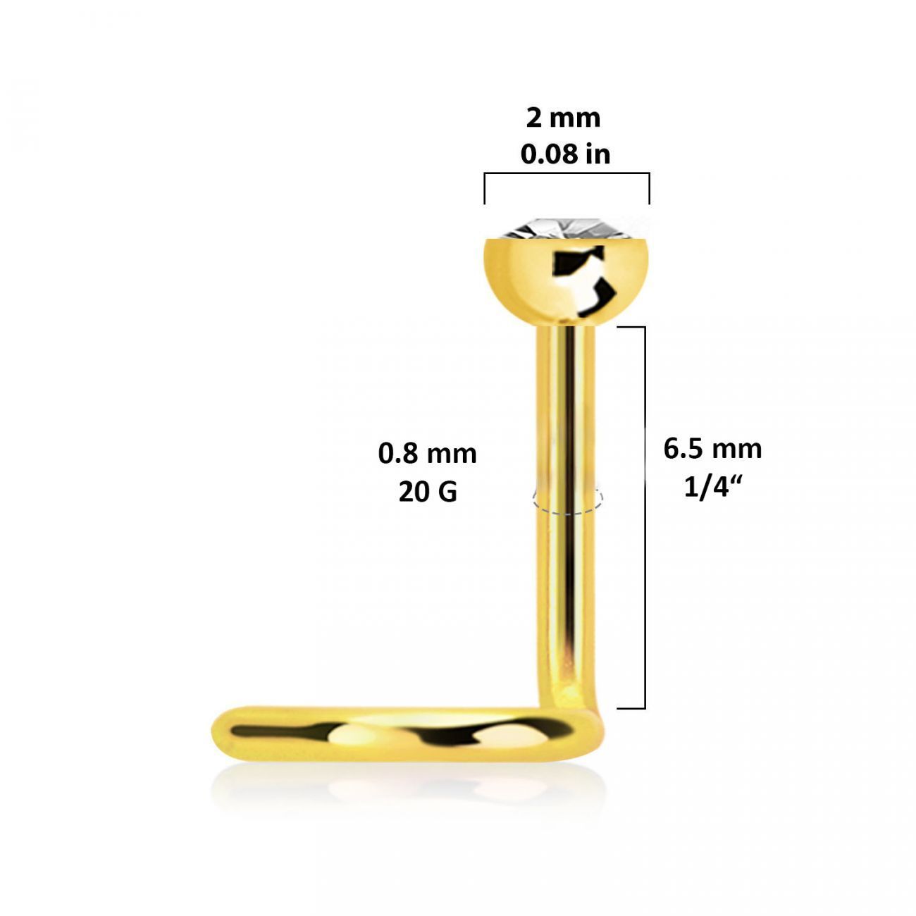 Ocelový zlacený zahnutý piercing do nosu s čirým zirkonem.