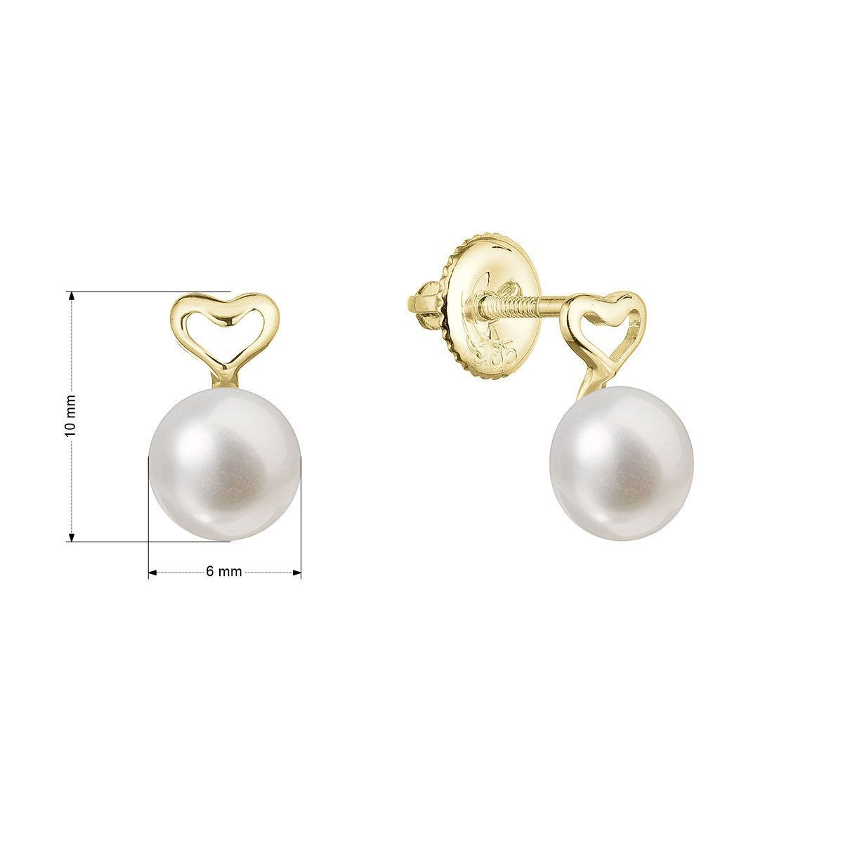 Ocelové šperky a piercing (16313) > Zlaté šperky (335) > Zlaté náušnice (22) > Zlaté 14 karátové náušnice pecky žluté zlato srdíčko s bílou říční perlou 91P00048