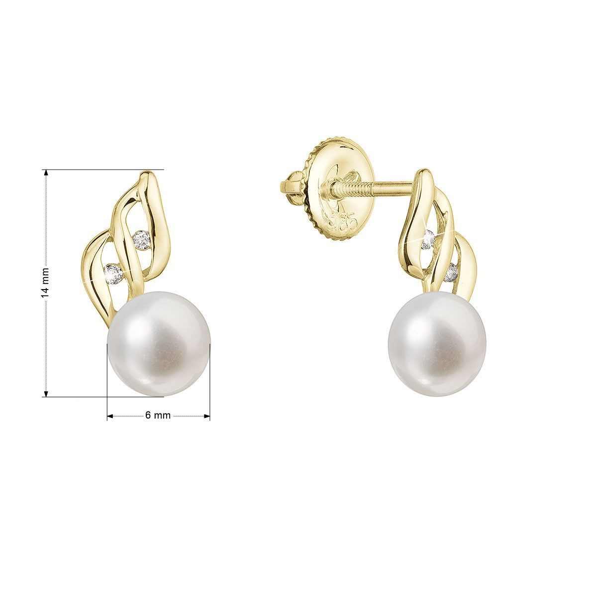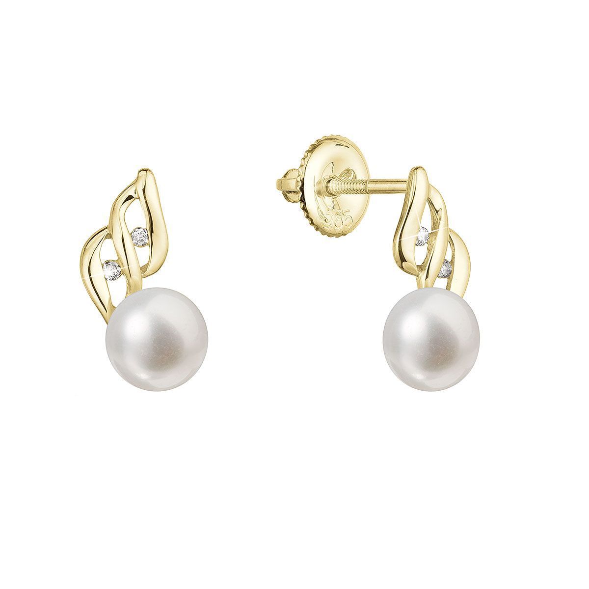 Zlaté 14 karátové náušnice s říční perlou a brilianty 91PB00043