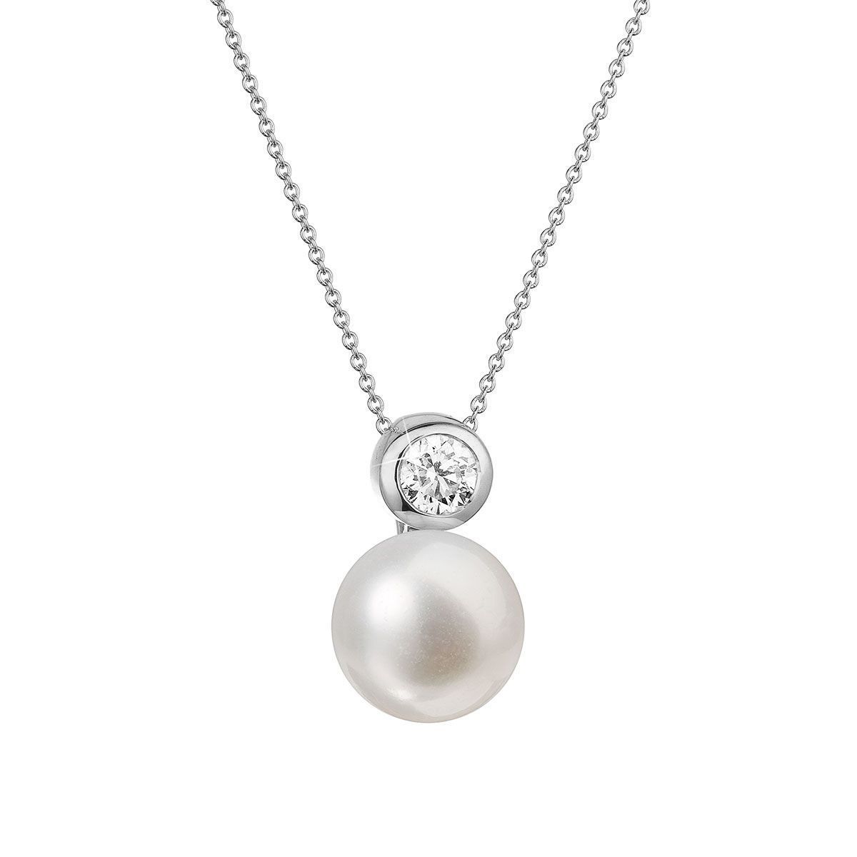 Ocelové šperky a piercing (17578) > Zlaté šperky (316) > Zlaté náhrdelníky > Zlatý 14 karátový náhrdelník bílé zlato s bílou říční perlou a briliantem 82PB00045