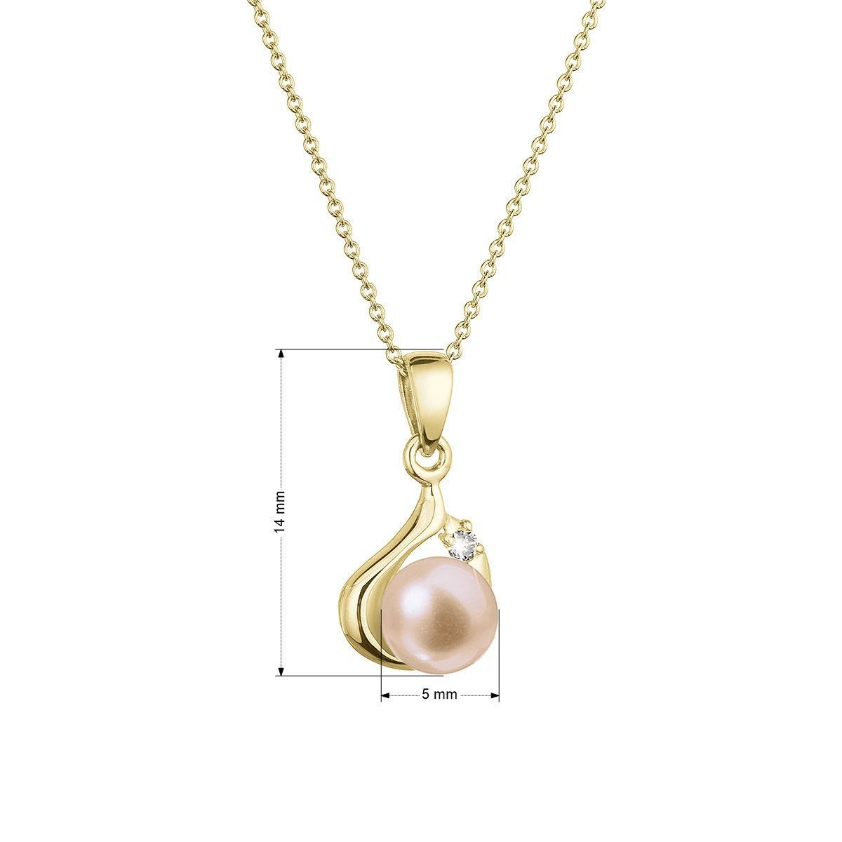 Zlatý 14 karátový náhrdelník s růžovou říční perlou a briliantem 92PB00047 pink