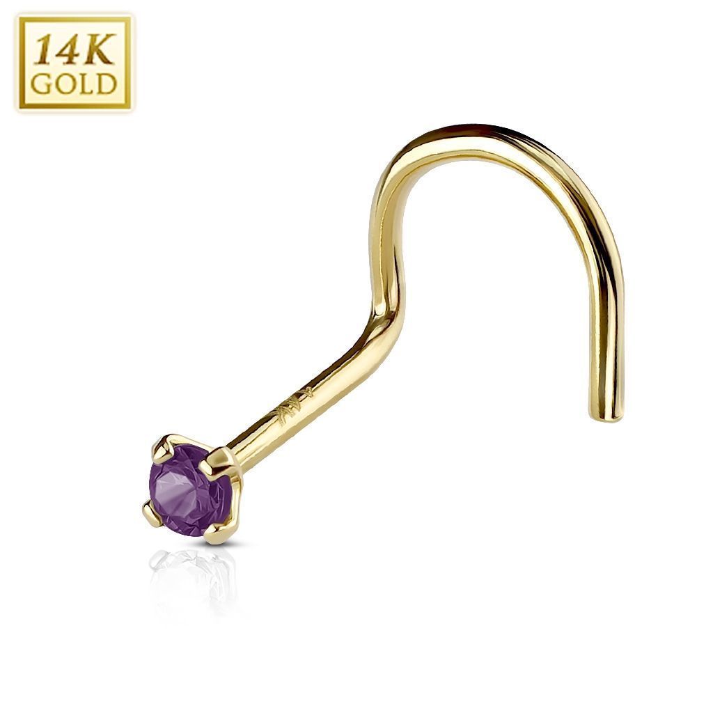 Zlatý zahnutý piercing do nosu ze 14ti karátového žlutého zlata zdobený zirkonem špičkové kvality.