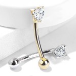 Ocelové šperky a piercing (16446) > Piercing (3892) > Piercing do obočí (143) > Zlatý piercing do obočí, čirý zirkon, Au 585/1000