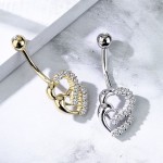 Zlatý piercing do pupíku ze 14ti karátového žlutého zlata s motivem srdíček, osazen kubickými zirkony špičkové kvality.